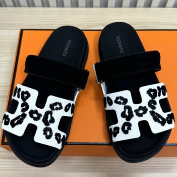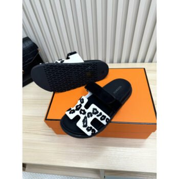 Hermes Chypre Unisex Slipper White/Black