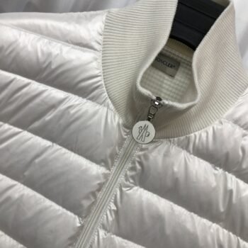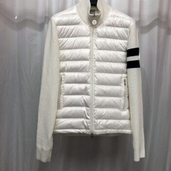 Moncler Sleeve Striped Down Cardigan White
