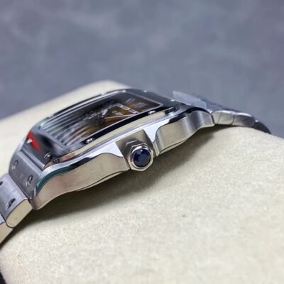 Cartier Santos Full Diamond Bust Down Silver Brown Dial Watch