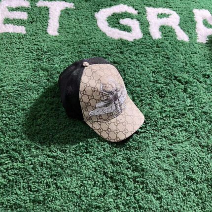 Gucci Bee Insect Print GG Supreme Baseball Hat Beige
