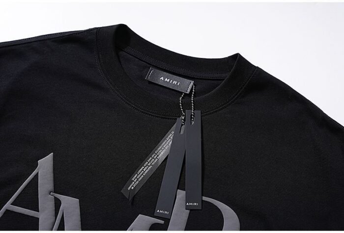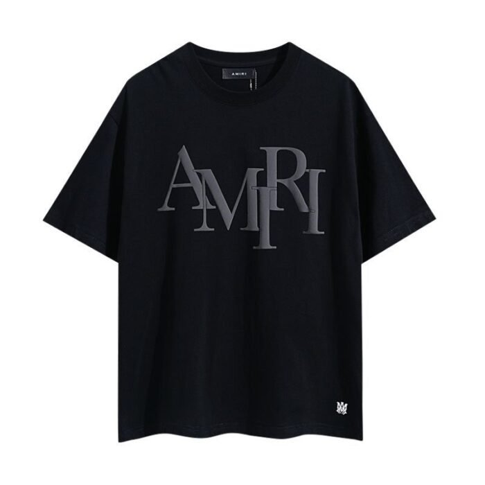 Amiri Black Staggered Logo Print Men’s T-Shirt Black