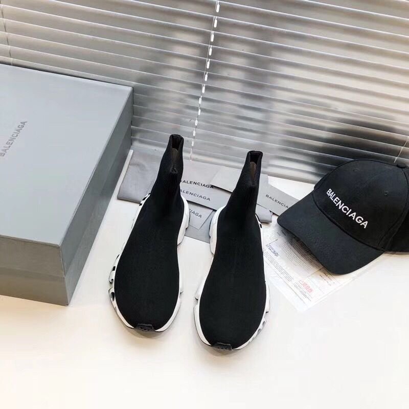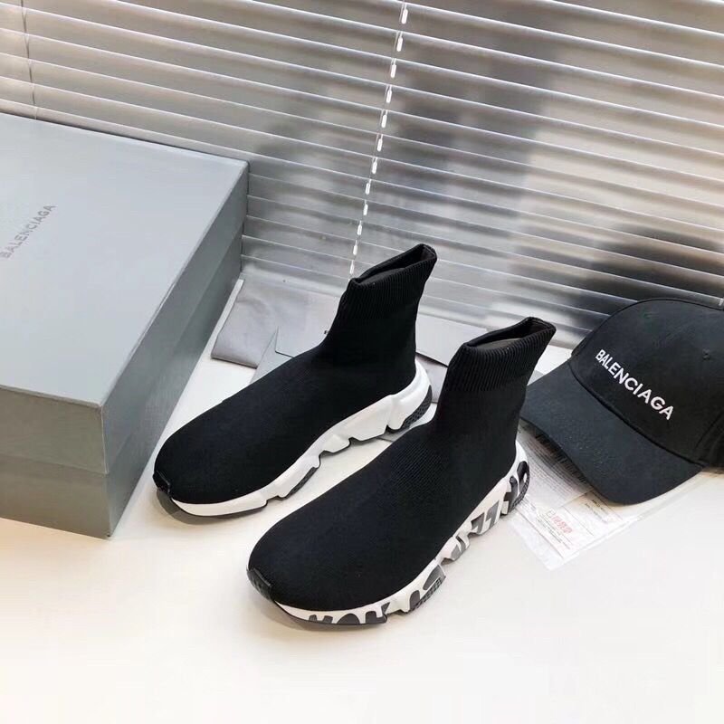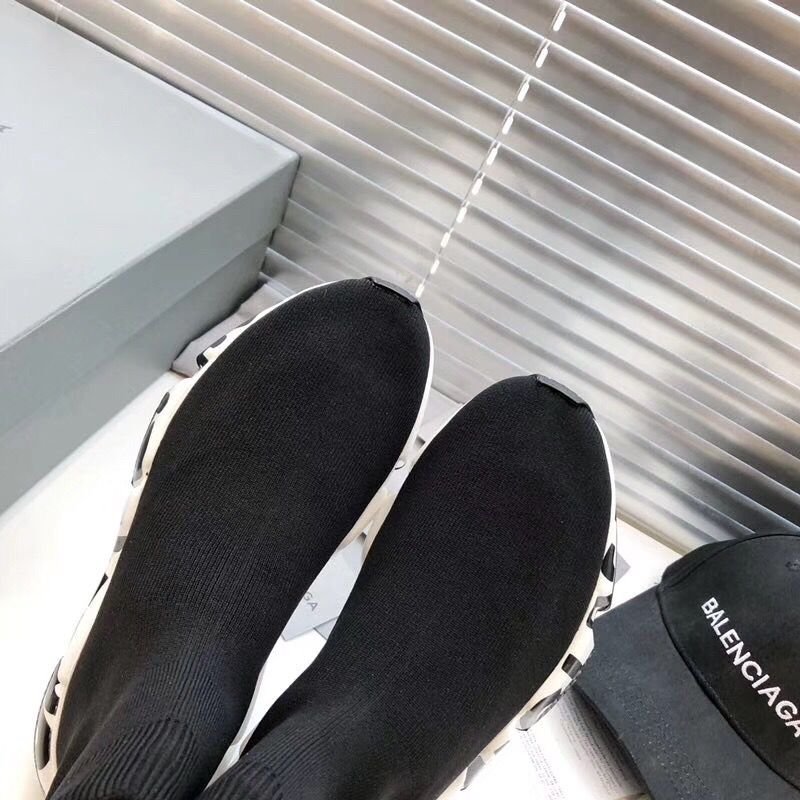 Balenciaga Black/White Unisex Speed Trainer With Paint