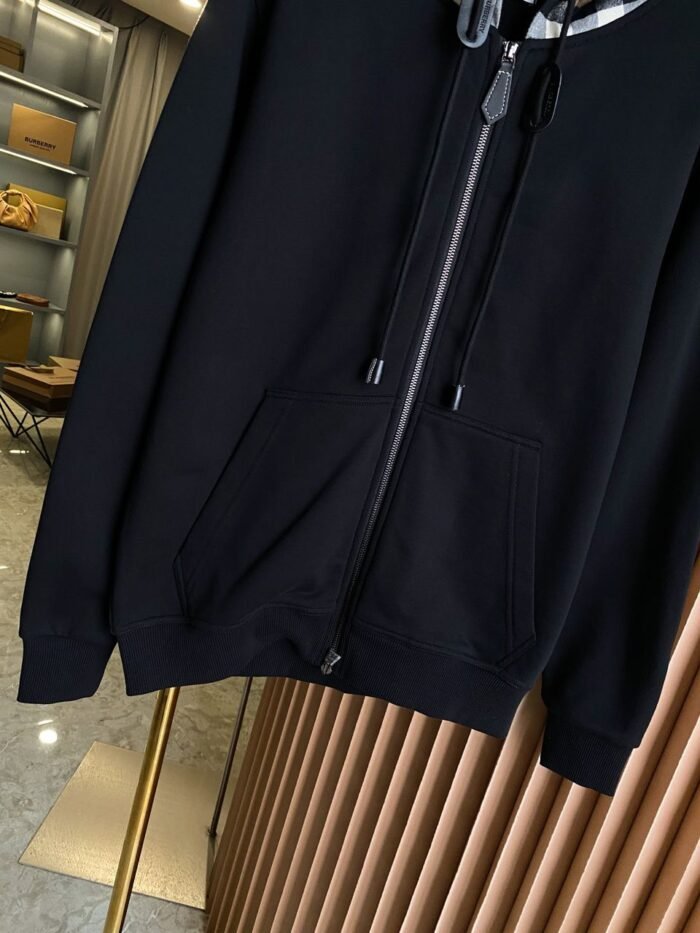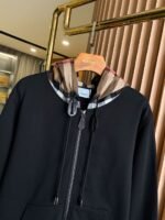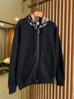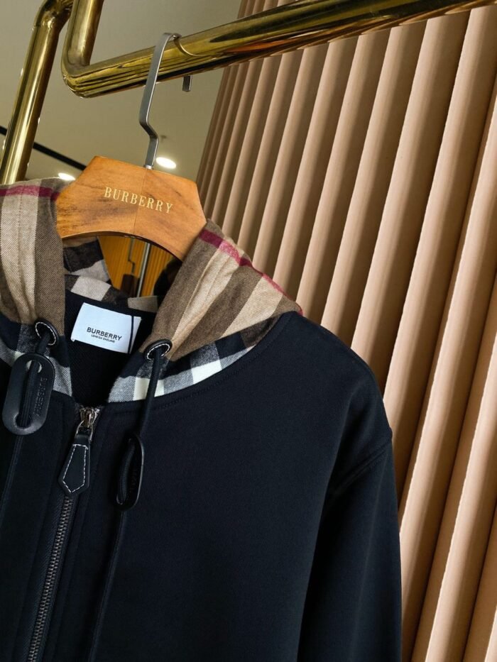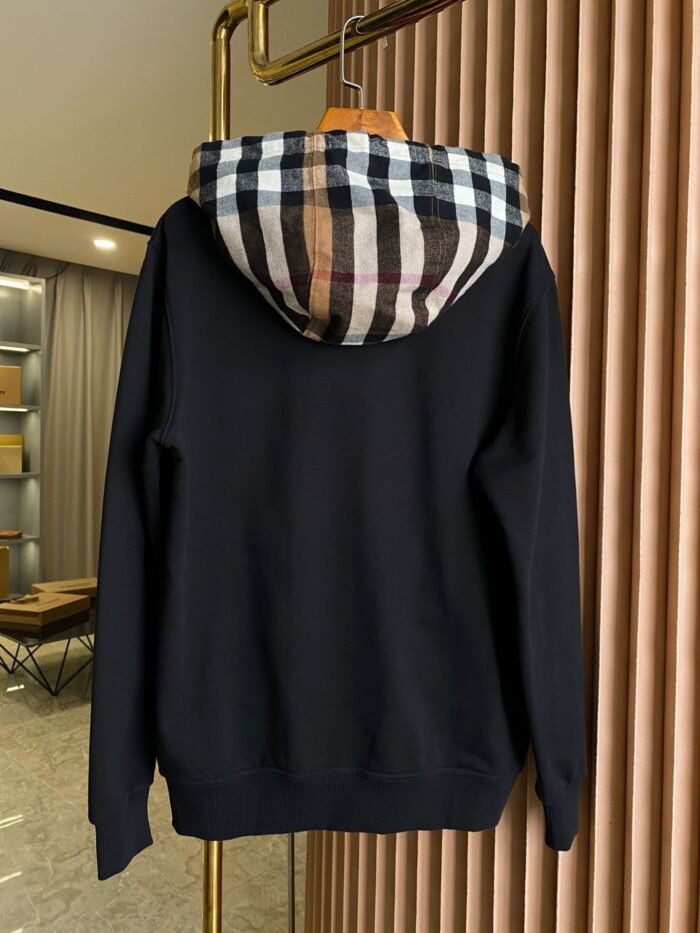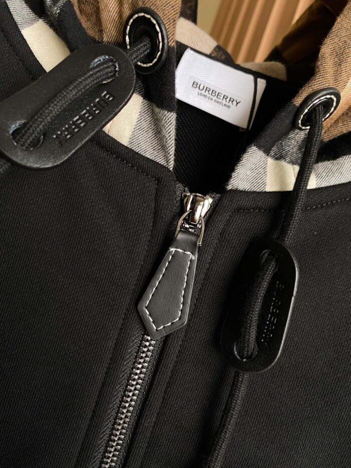Burberry Check Hood Cotton Zip Men’s Hoodie in Black/Archive Beige