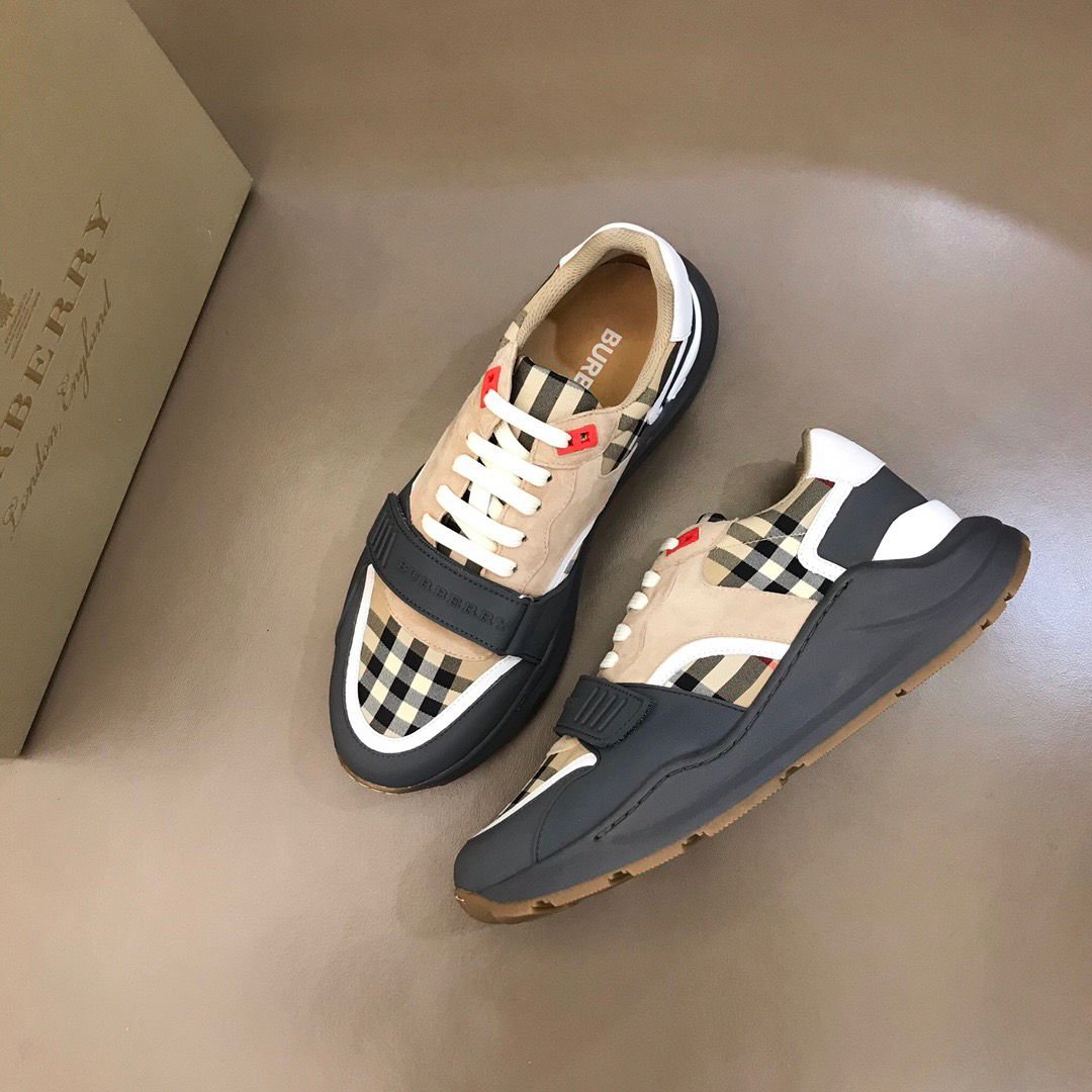 Burberry Checked Lace-Up Unisex Sneakers Black/Brown