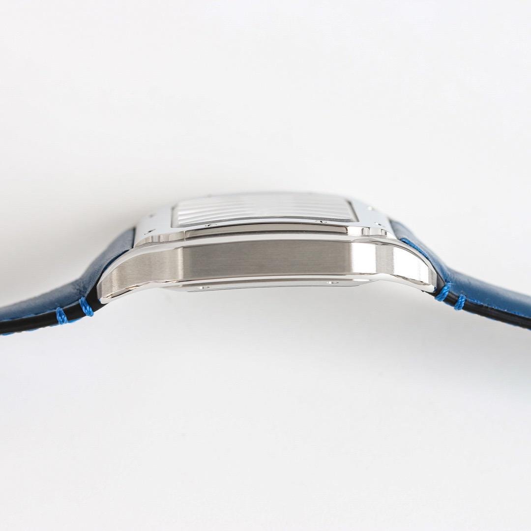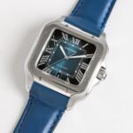 Cartier Santos Down Silver Blue Dial Watch Blue Leather Strape