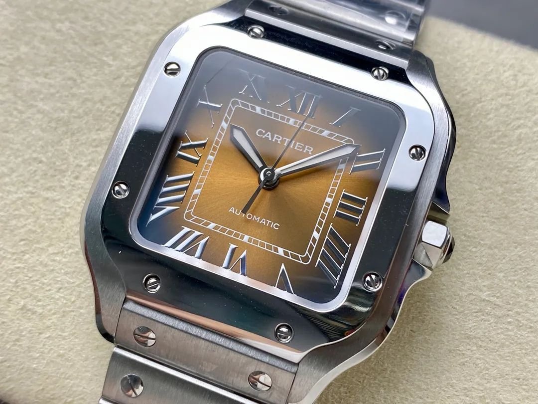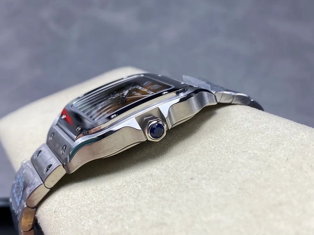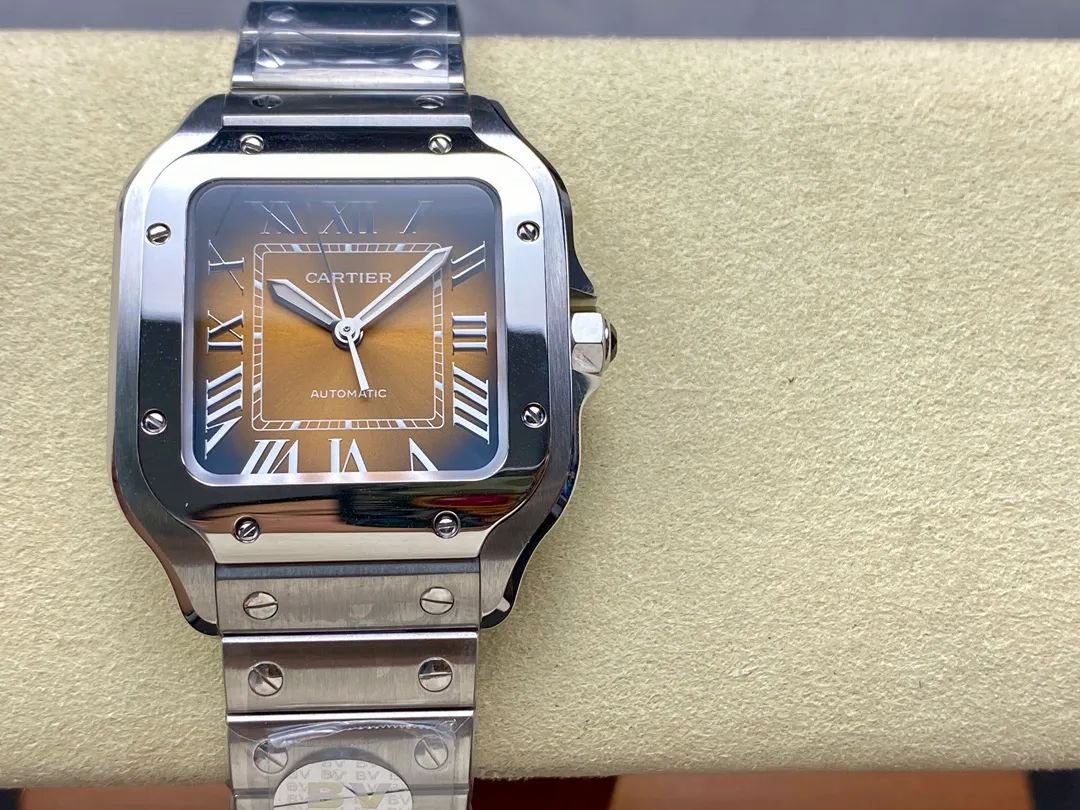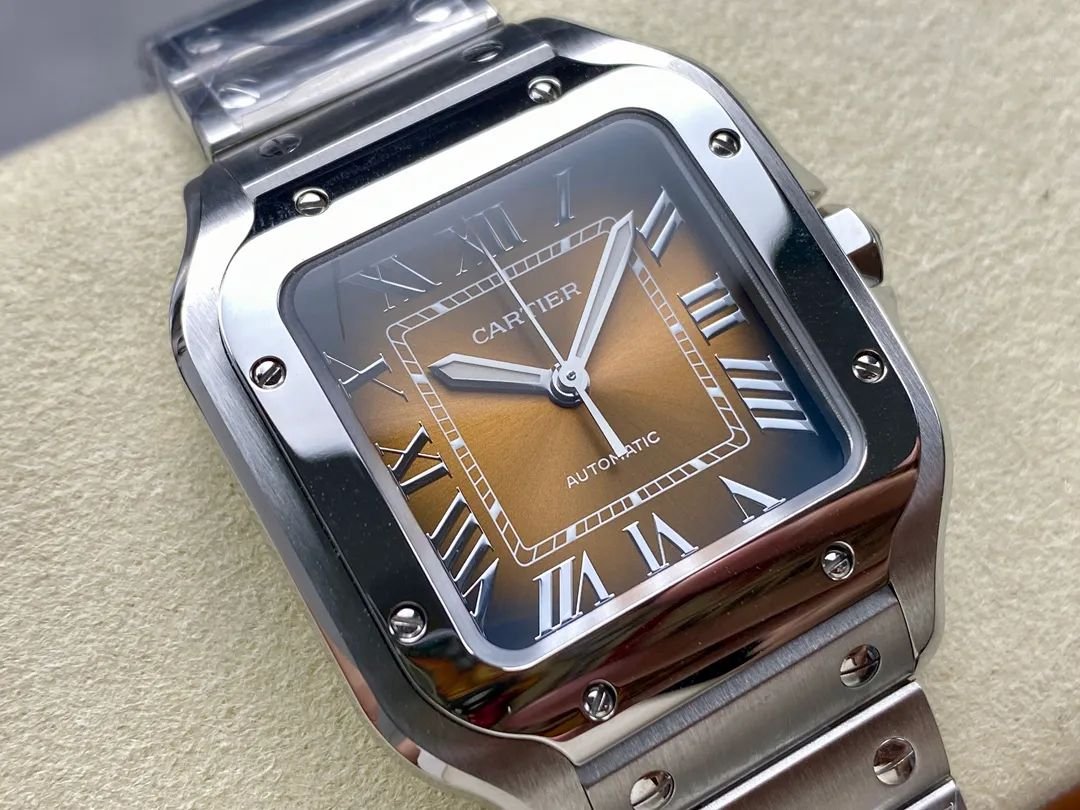 Cartier Santos Full Diamond Bust Down Silver Brown Dial Watch