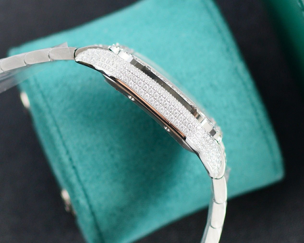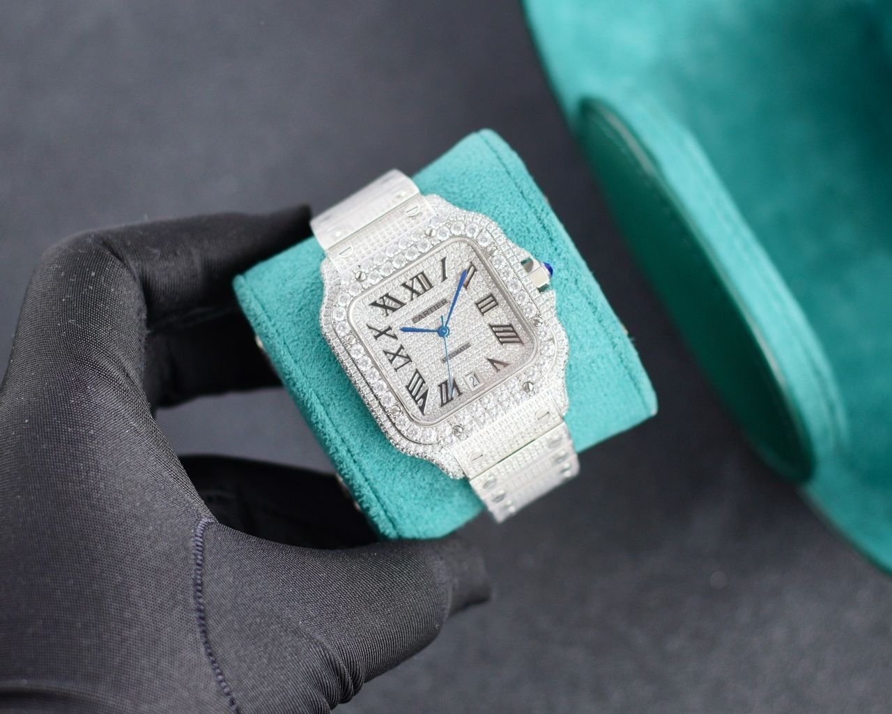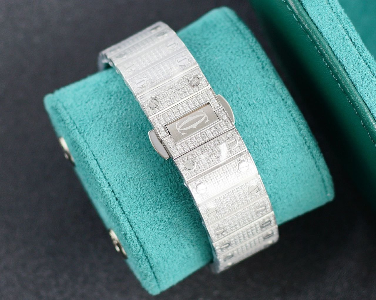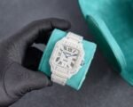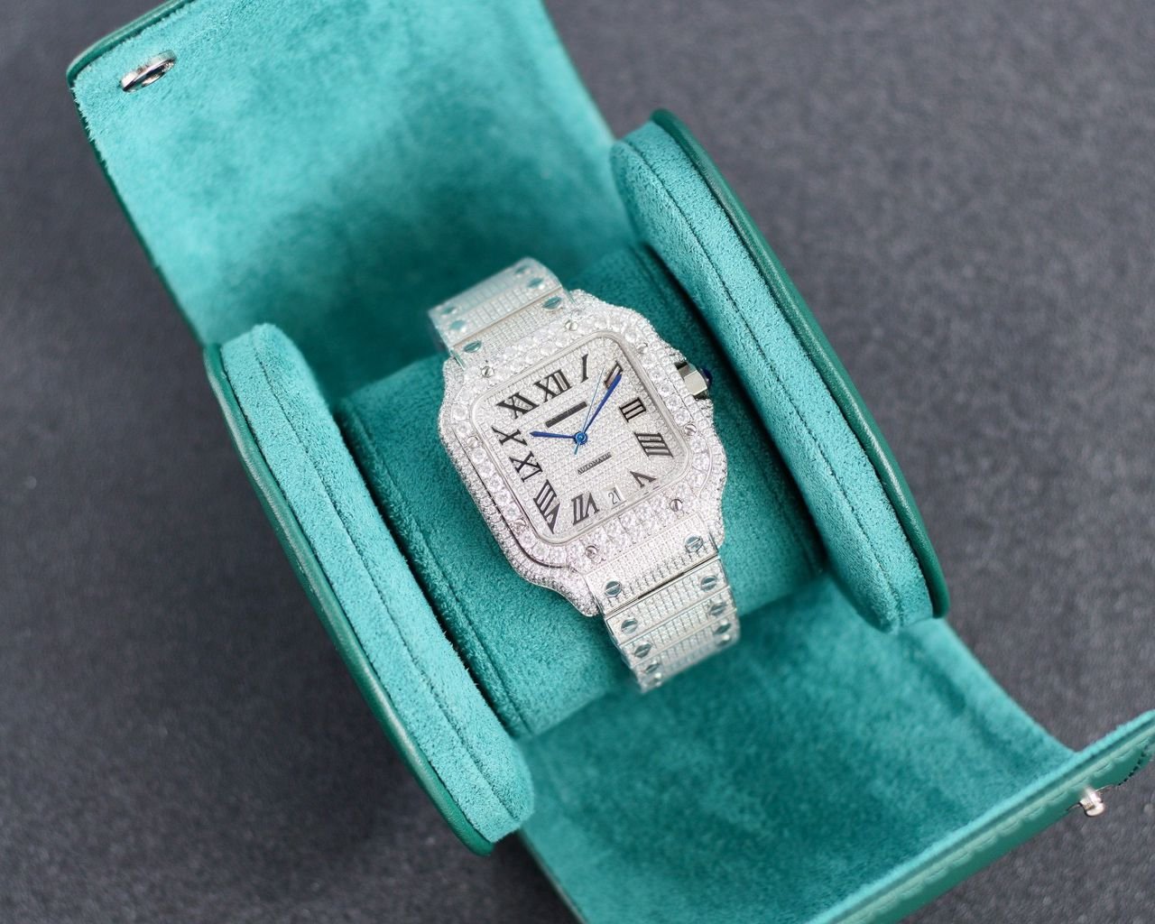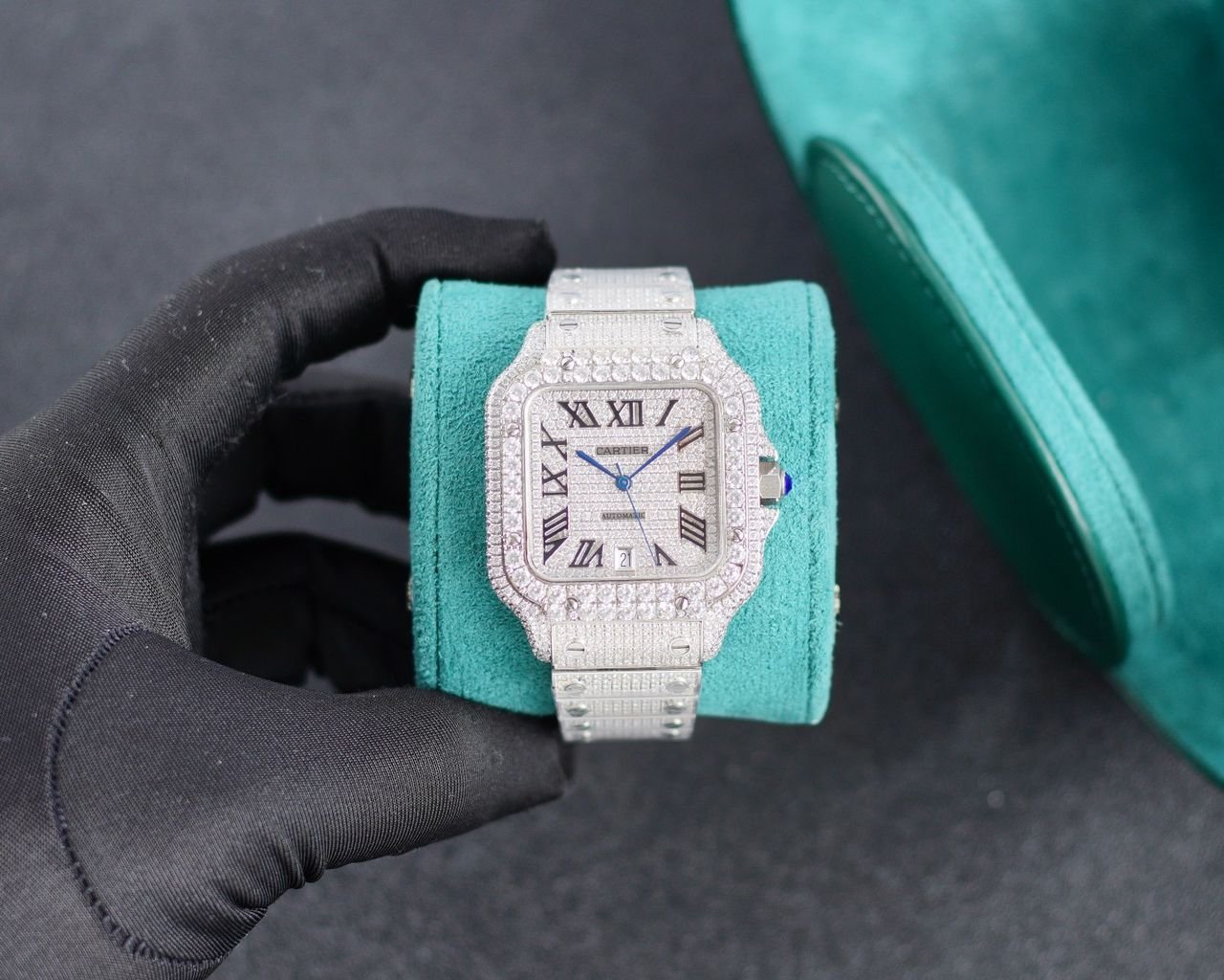 Cartier Santos Full Diamond Bust Down Silver Watch