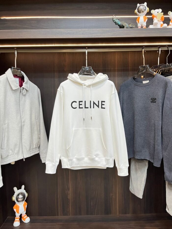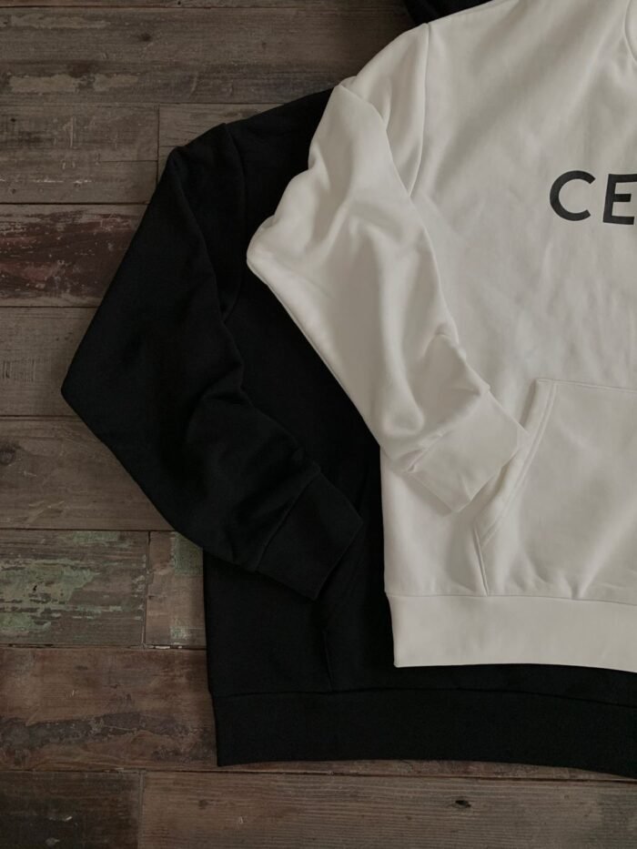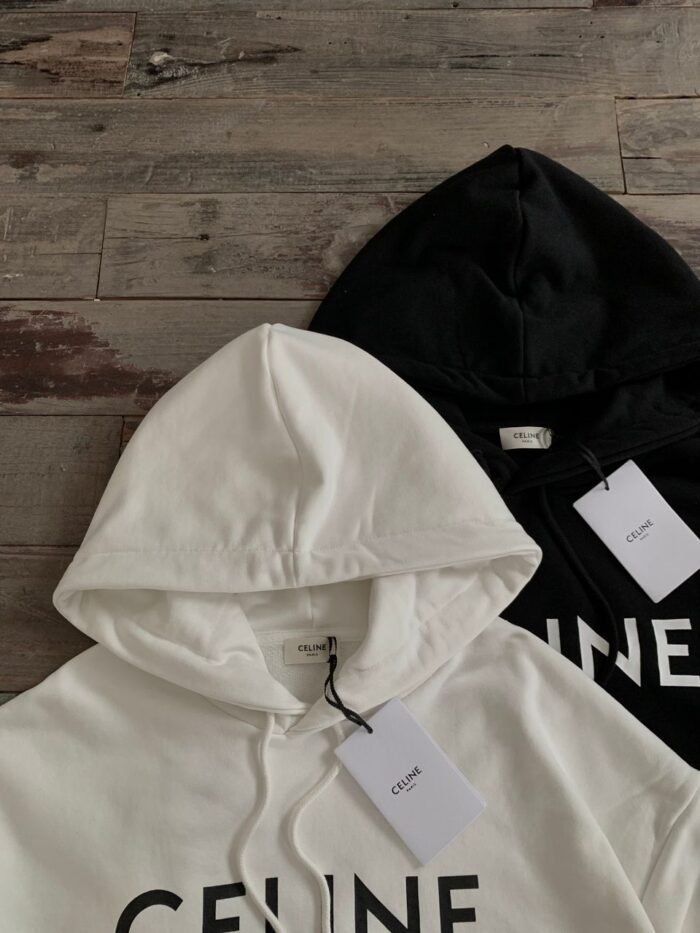 Celine Loose Hoodie In Cotton Fleece Black & White