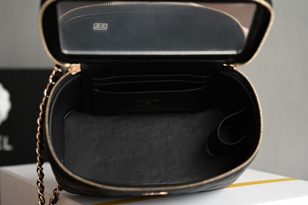 Chanel Matelasse Top Handle Vanity Bag Leather Black