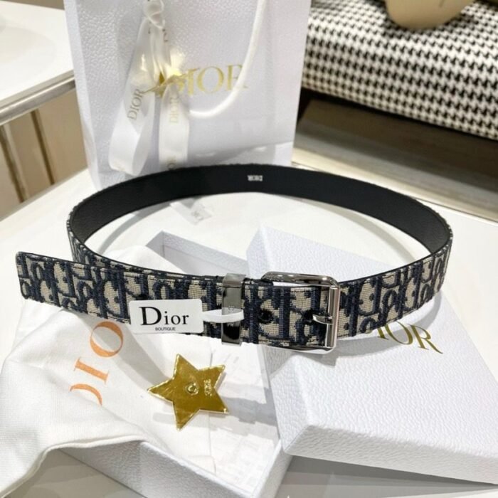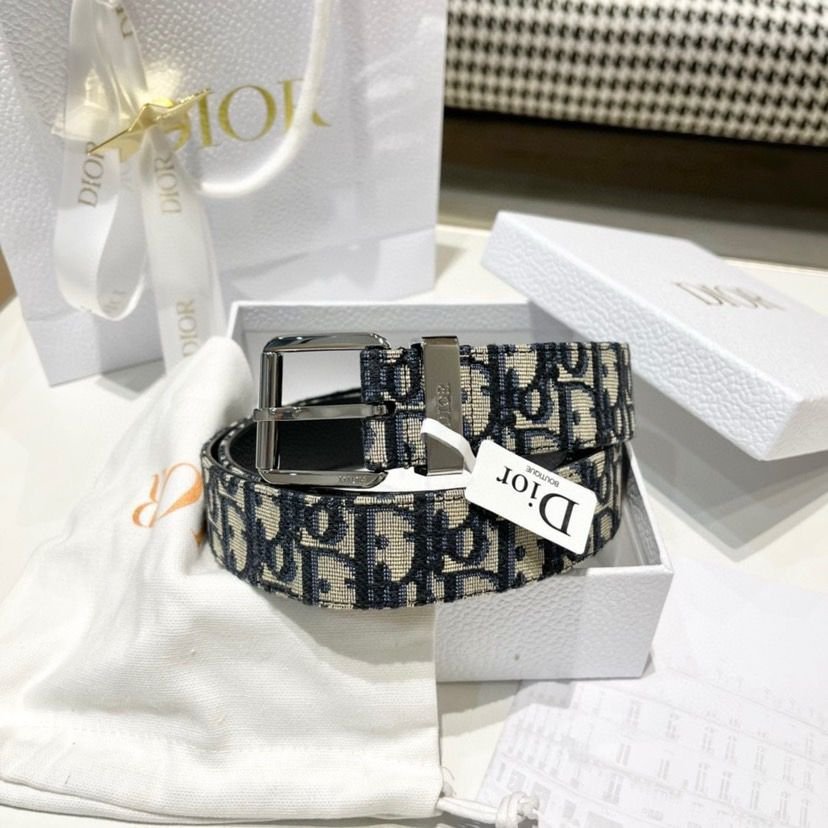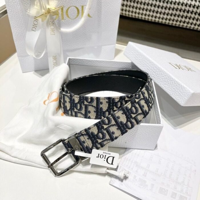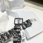 Christian Dior Black Oblique Jacquard Grained Calfskin Unisex Belt
