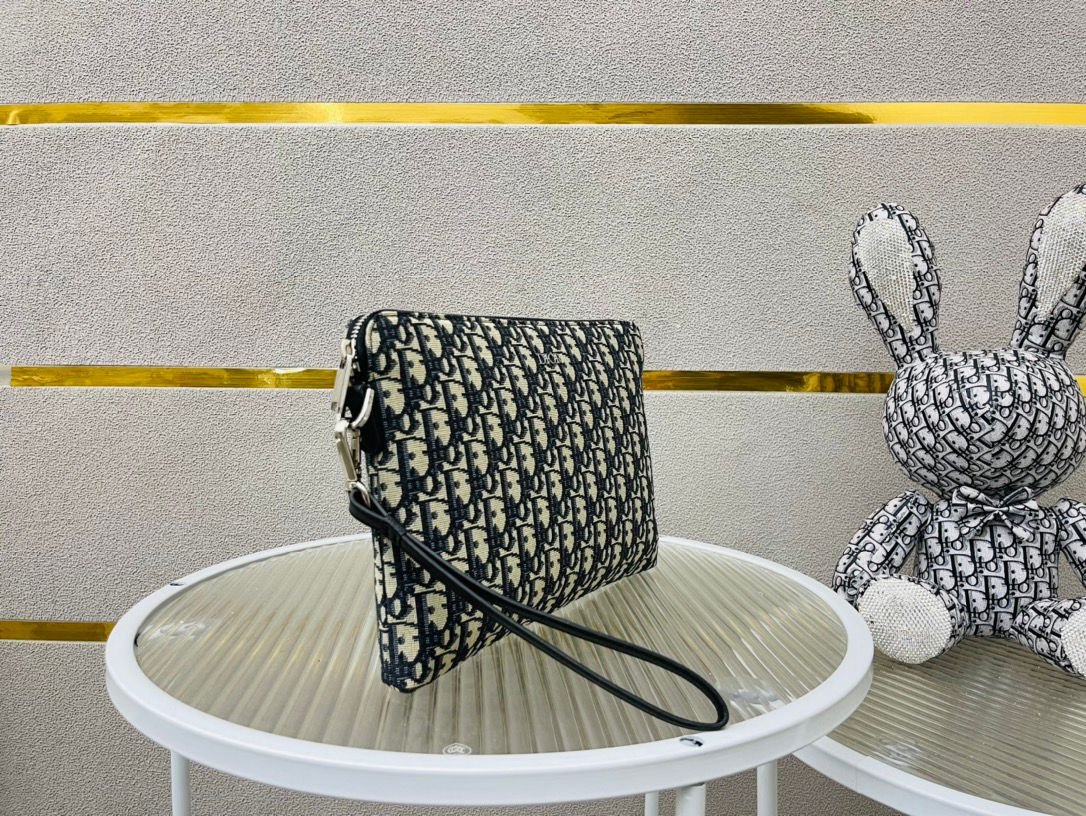 Christian Dior Clutch Unisex Bag Oblique Jacquard Navy Trotter