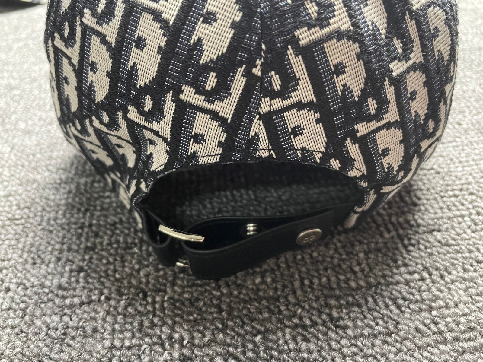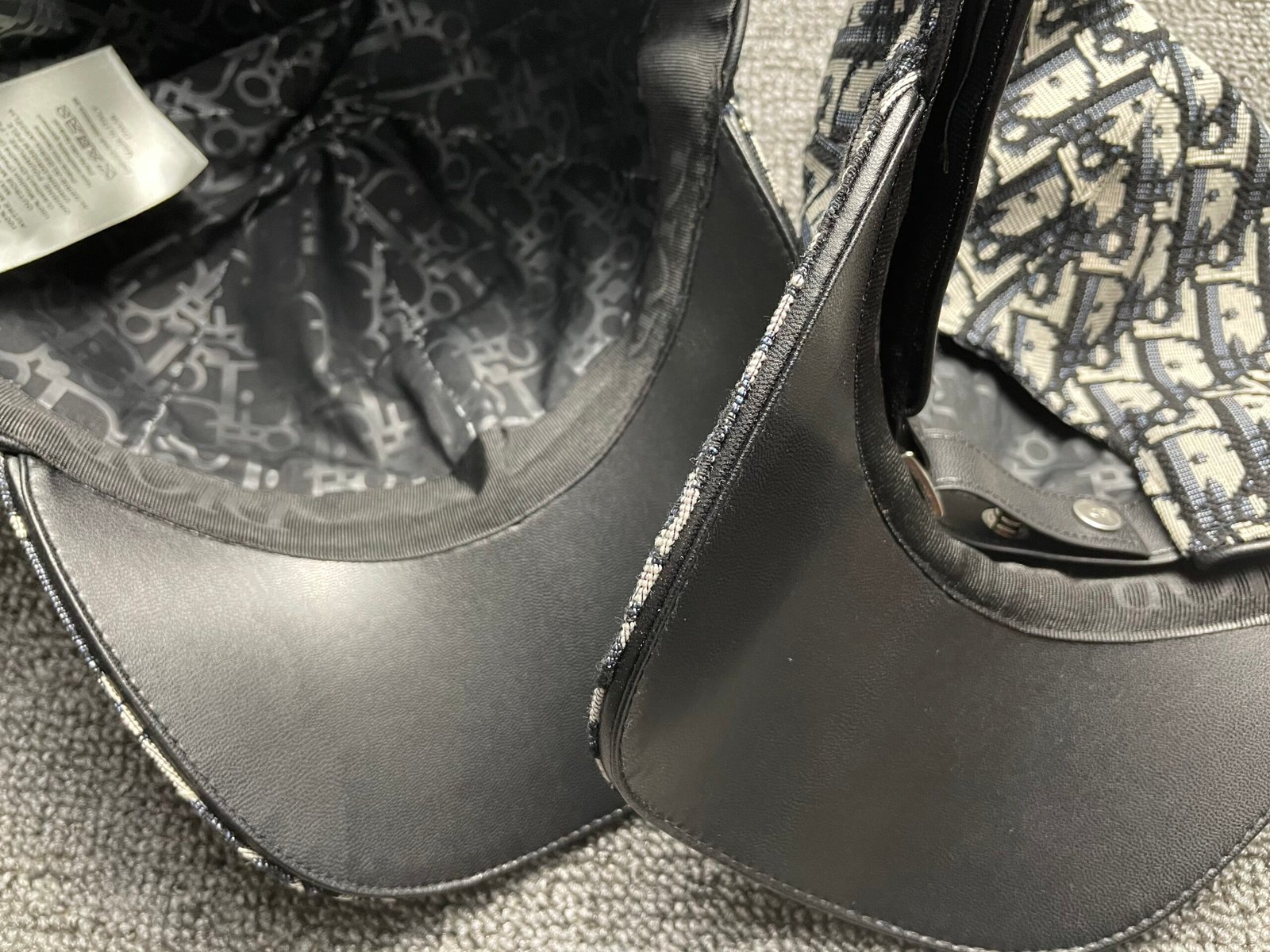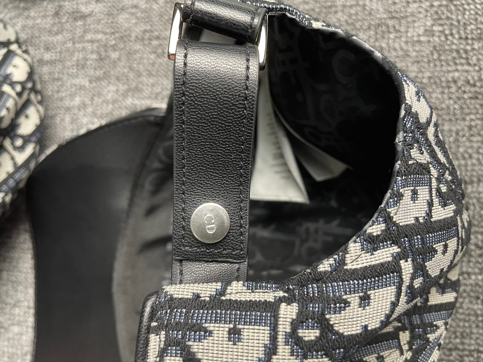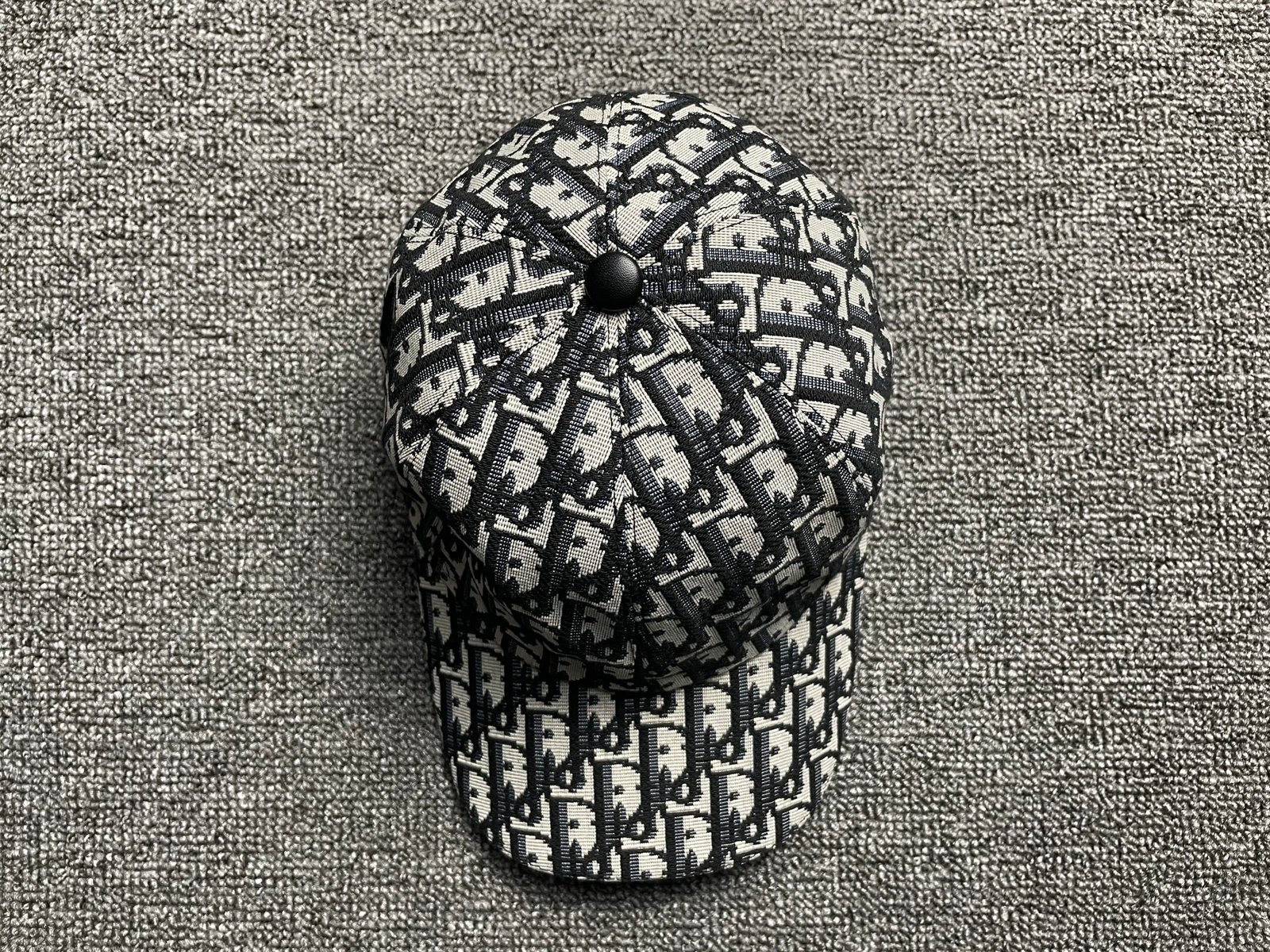Christian Dior Oblique Hat Navy Blue and Beige Blended Cotton Jacquard