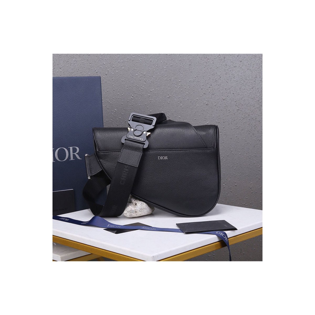 Christian Dior Oblique Saddle Strap Bag Black