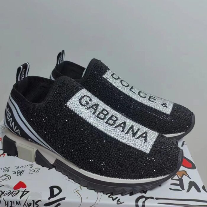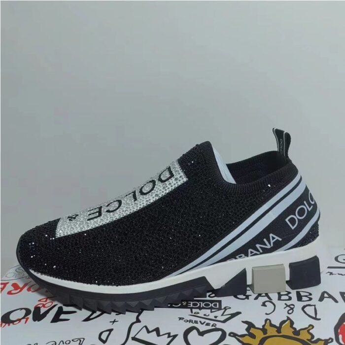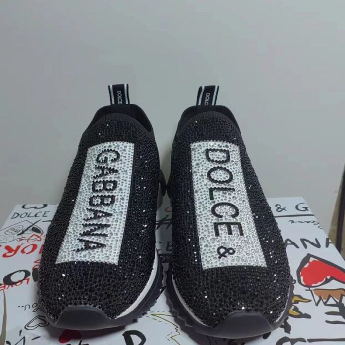 Dolce & Gabbana Sorrento Logo Slip On Black Grey White Diamond