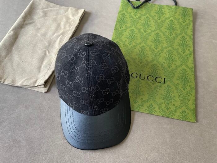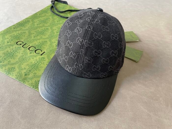 Gucci GG Branded-print Six-panel Cotton Black Unisex Hat (Fast Delivery 1-3 Days)