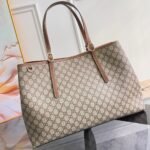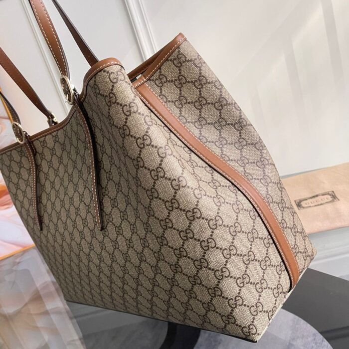 Gucci GG Emblem Maxi Tote Women’s Bag In Beige And Dark Brown