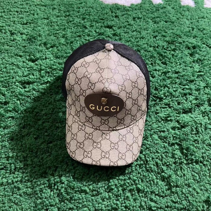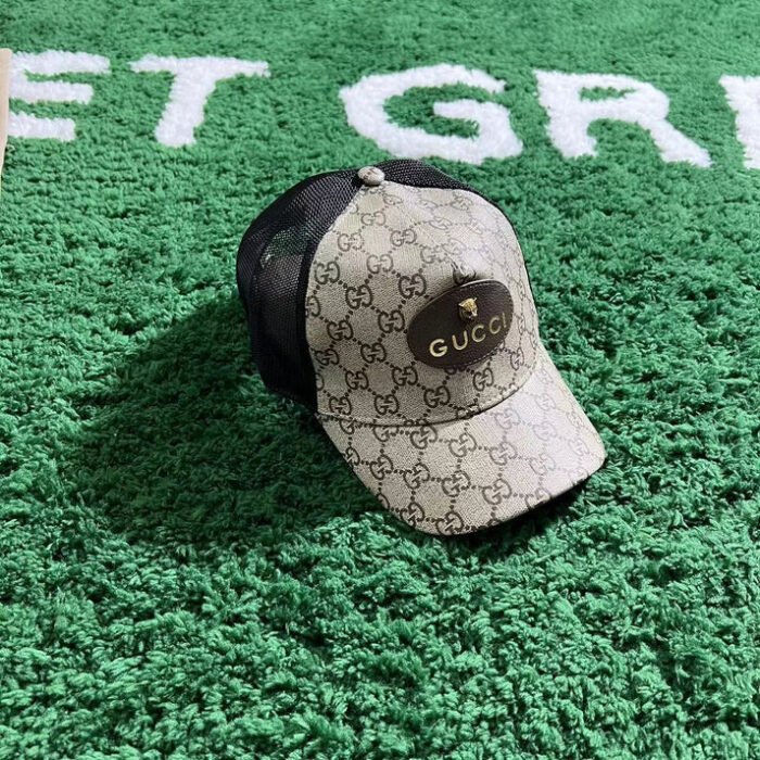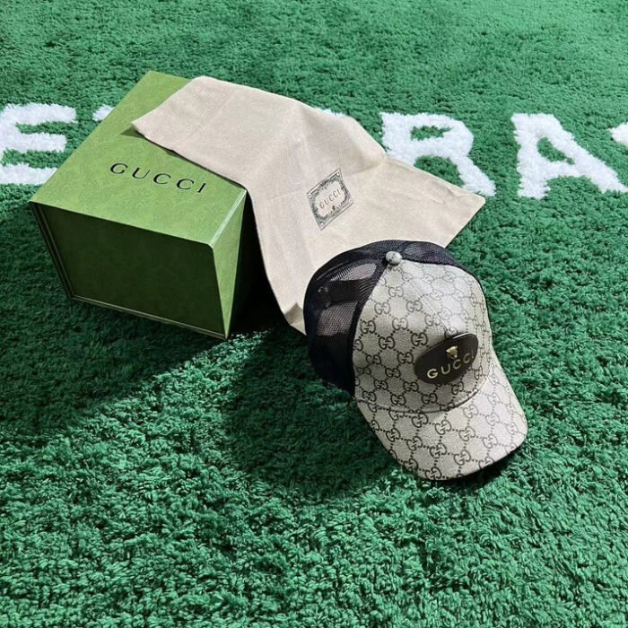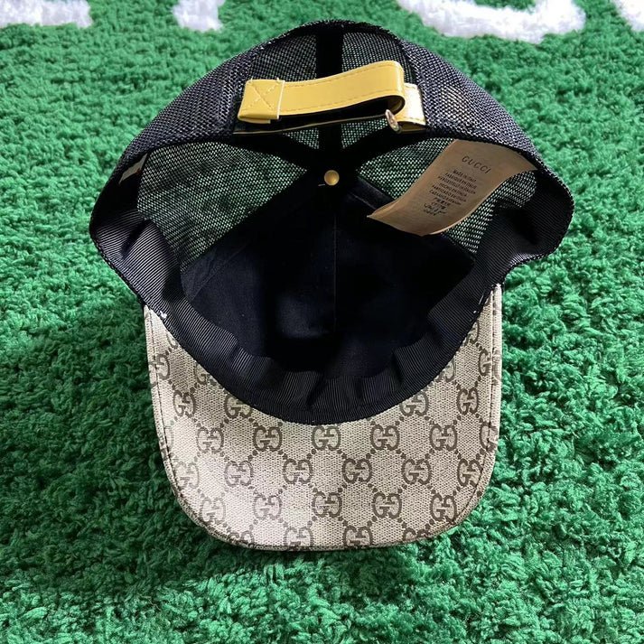 Gucci Bee Insect Print GG Supreme Baseball Hat Beige