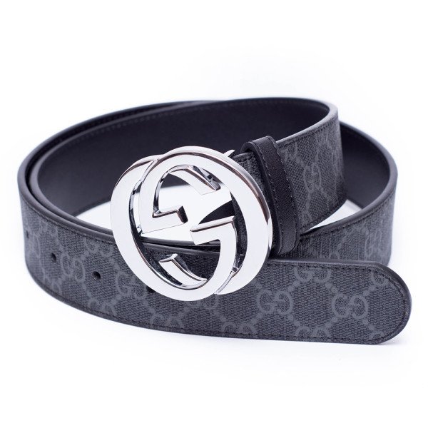 Gucci Men's Belt Canvas Black Silver Buckle