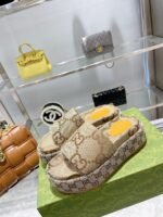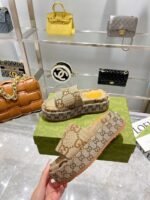 Gucci Women’s Platform Slide Sandal Canvas Beige