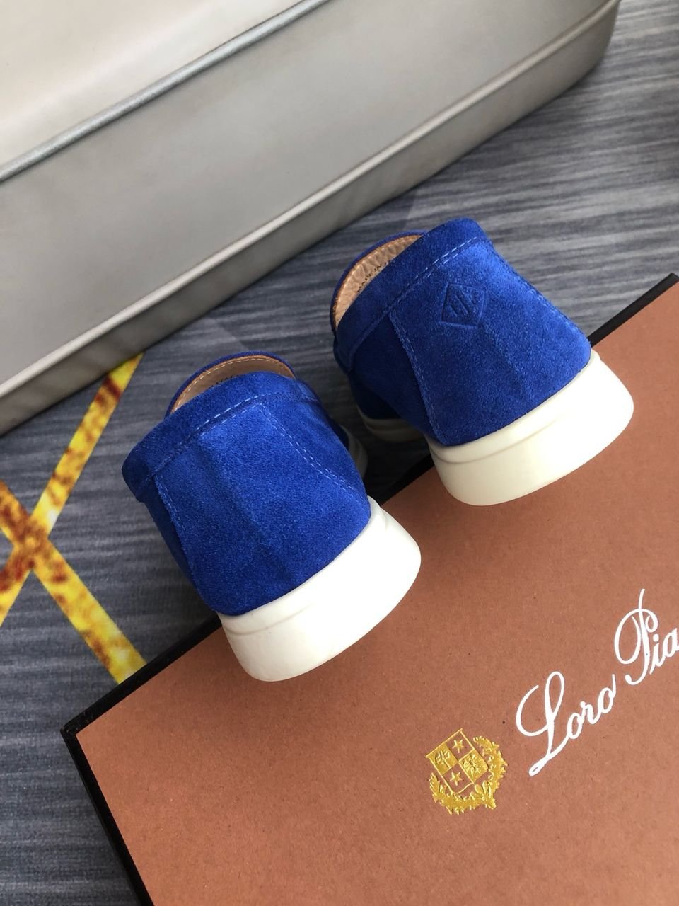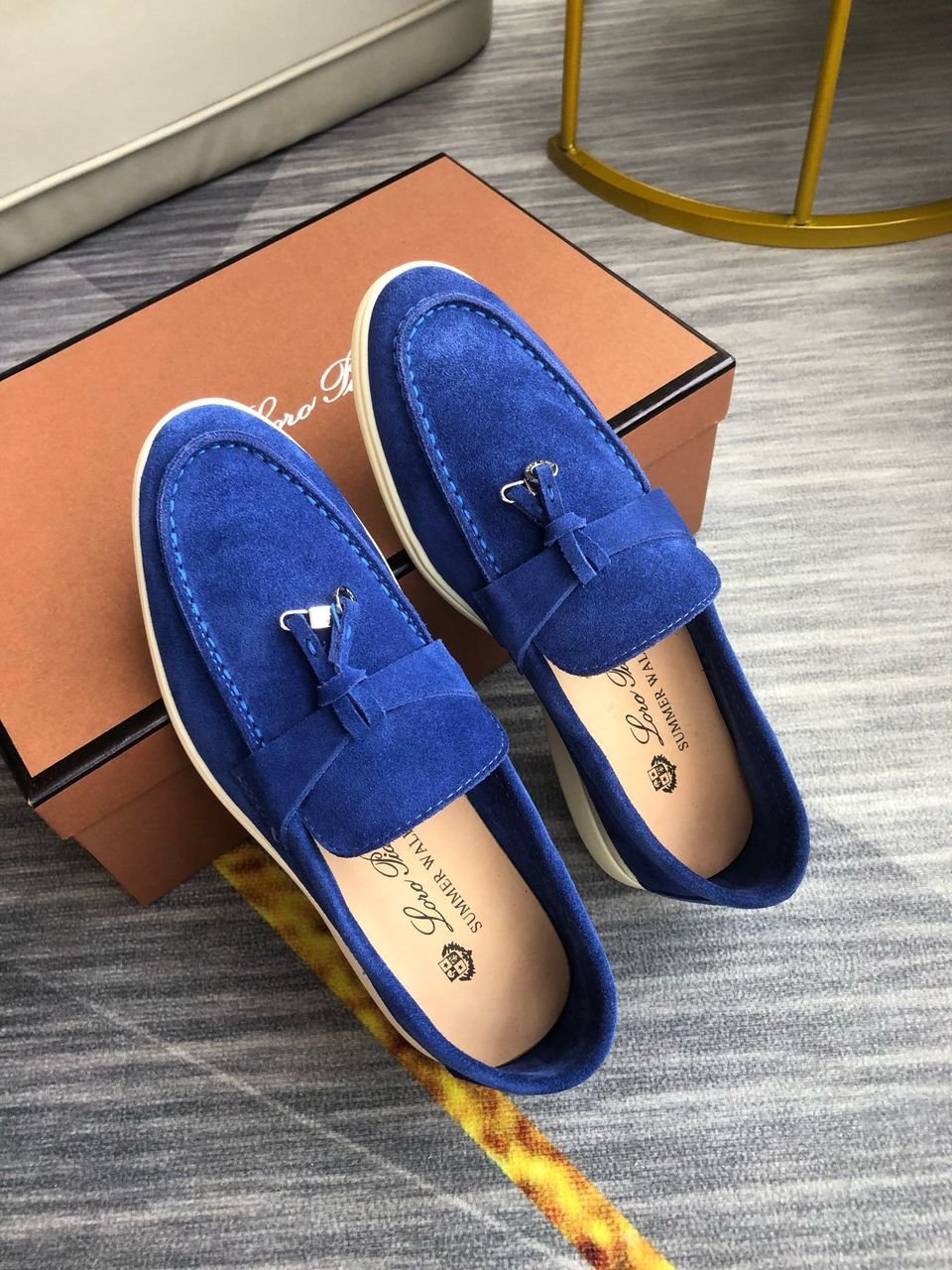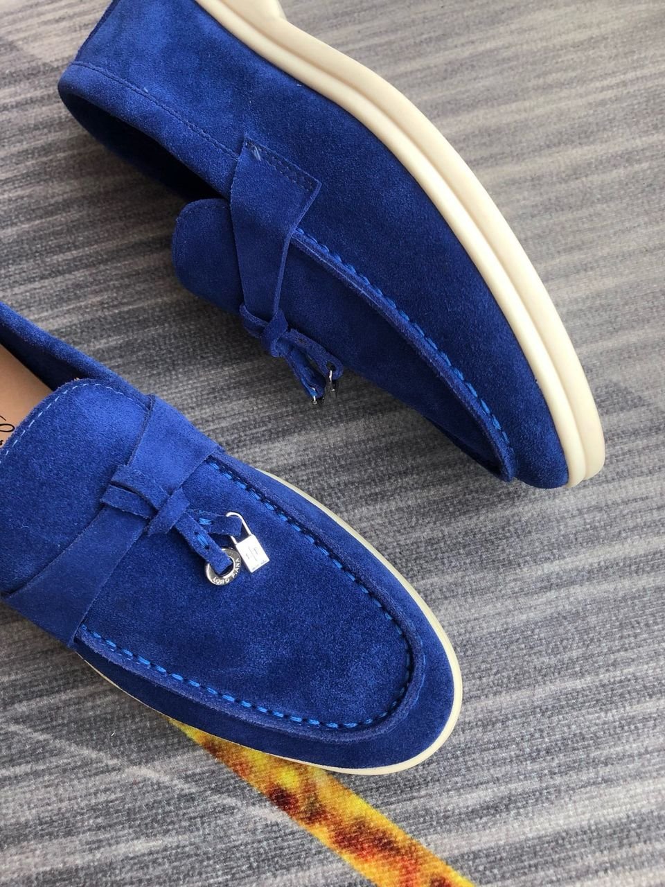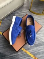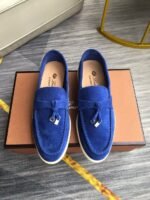 Loro Piana Babouche Charms Walk Men’s Loafers Suede Goatskin Blue