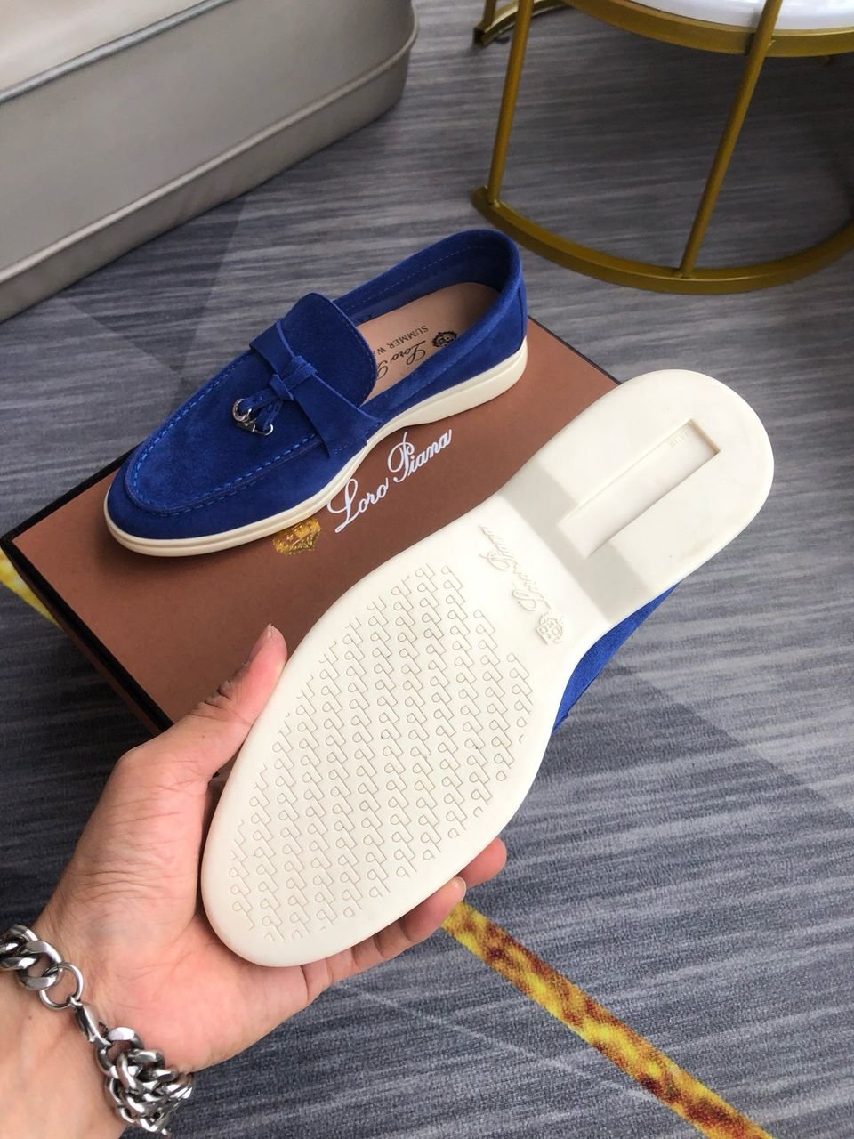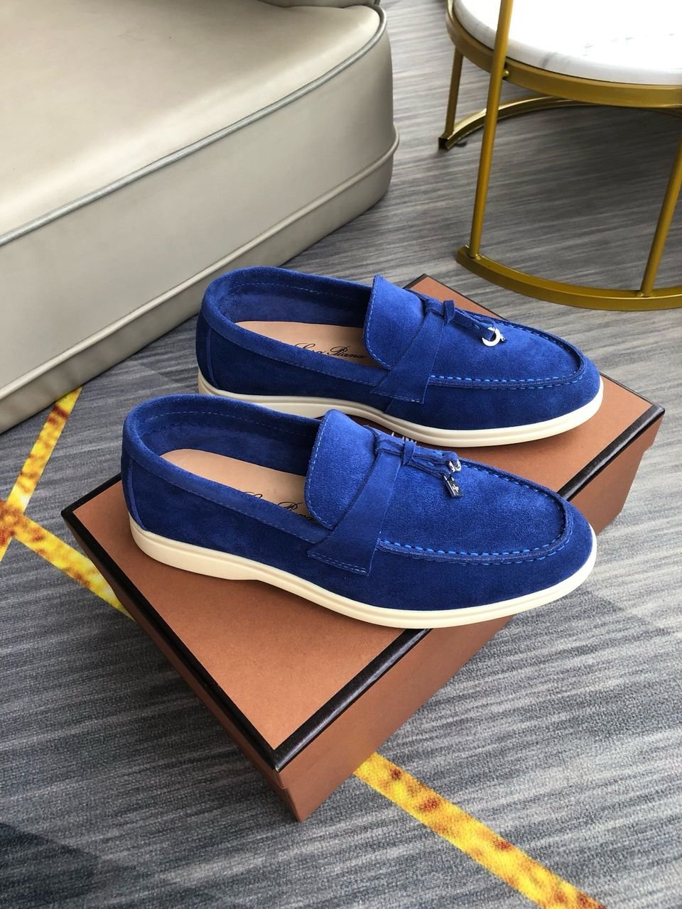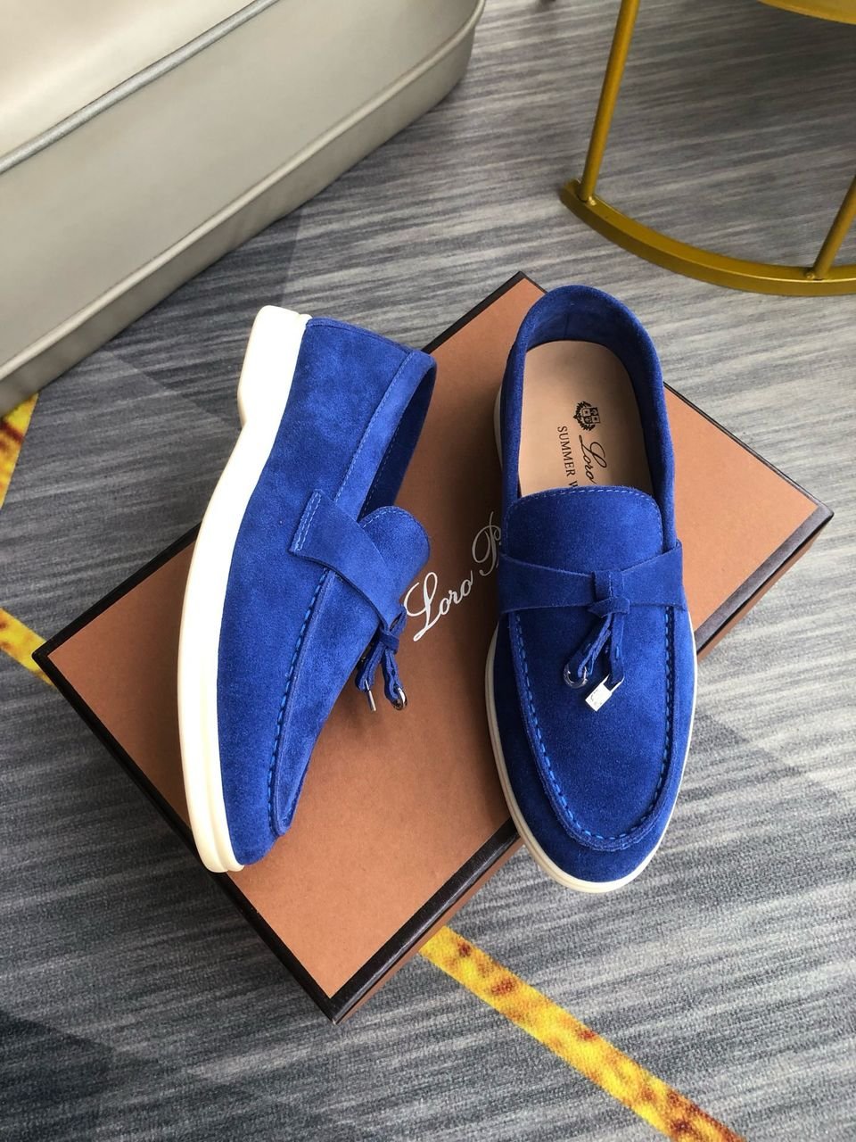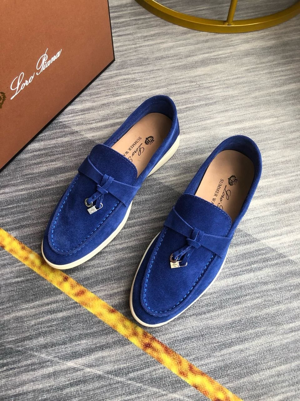 Loro Piana Babouche Charms Walk Men’s Loafers Suede Goatskin Blue