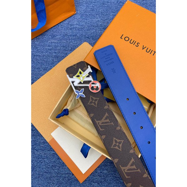 Louis Vuitton Monogram Logo Men’s Belt Brown/Blue