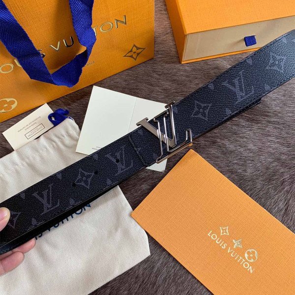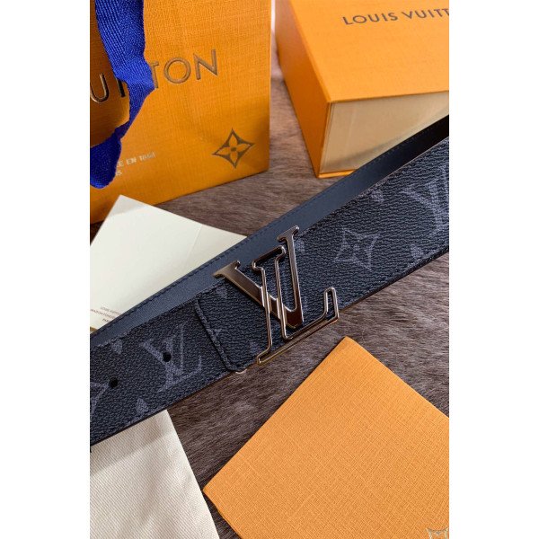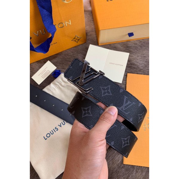Louis Vuitton Monogram Men’s Belt Black With Silver Buckle