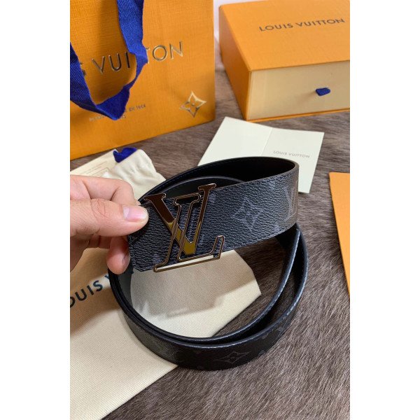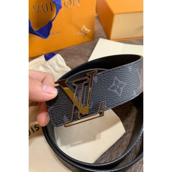 Louis Vuitton Monogram Men's Belt Black With White Buckle
