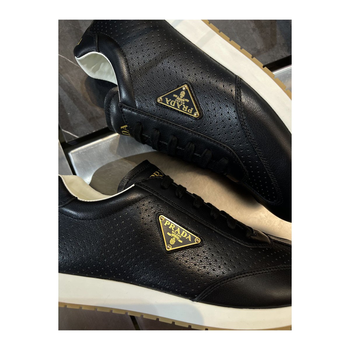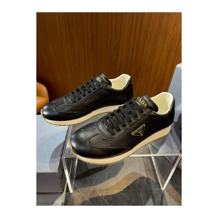 Prada Ivory Leather Unisex Sneakers Black