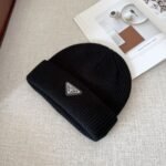 Prada Wool Logo Plaque Unisex Beanie Black