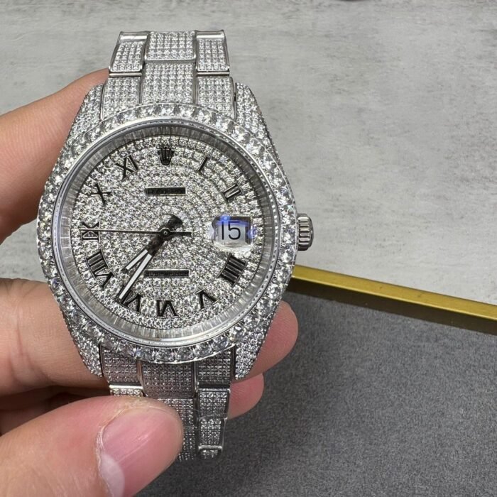 Rolex Full Diamond Bust Down Date Oyster Stainless Steel