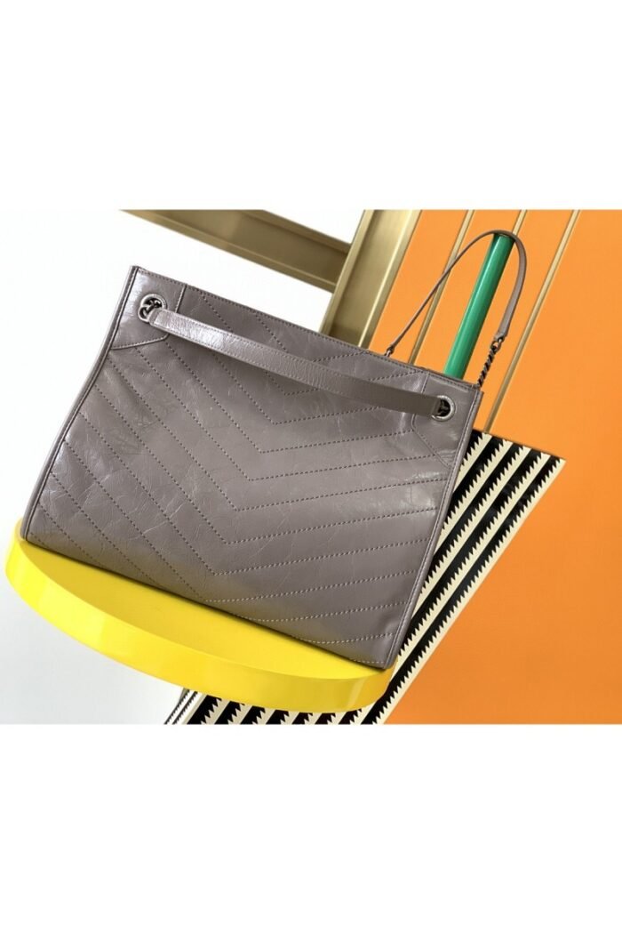 Saint Laurent Crinkled Calfskin Matelasse Women’s Bag Grey