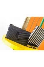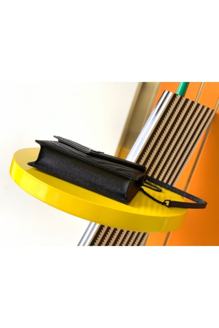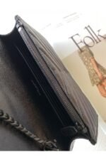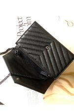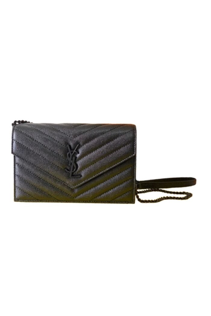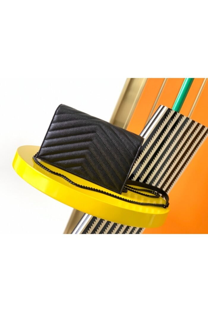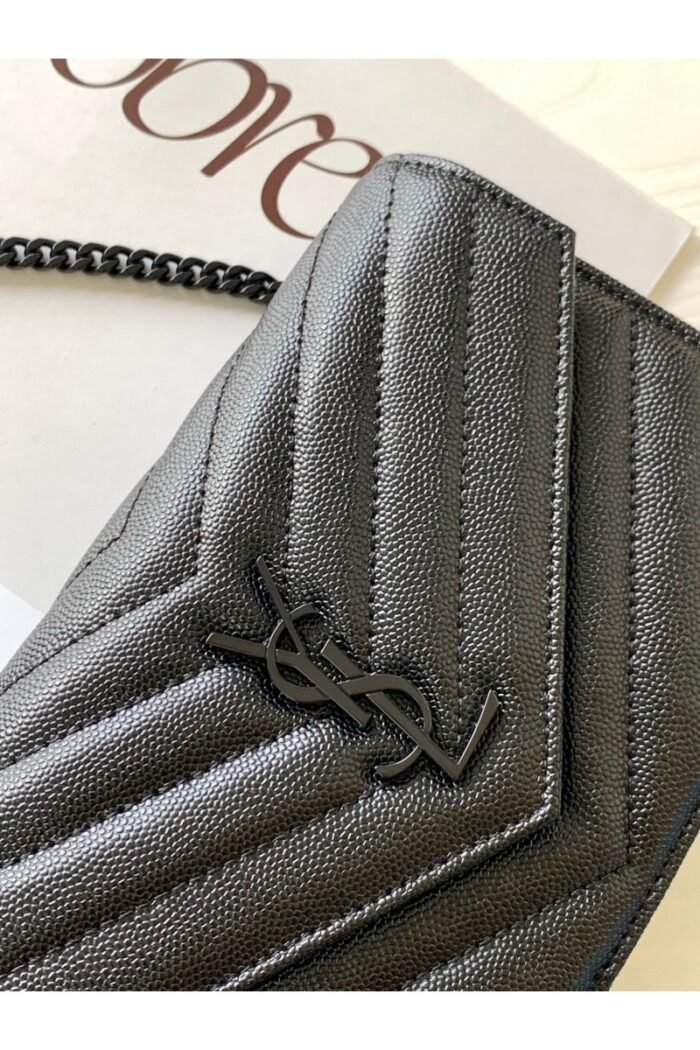 Saint Laurent Monogram Embossed Leather Chain Wallet Women’s Bag Black