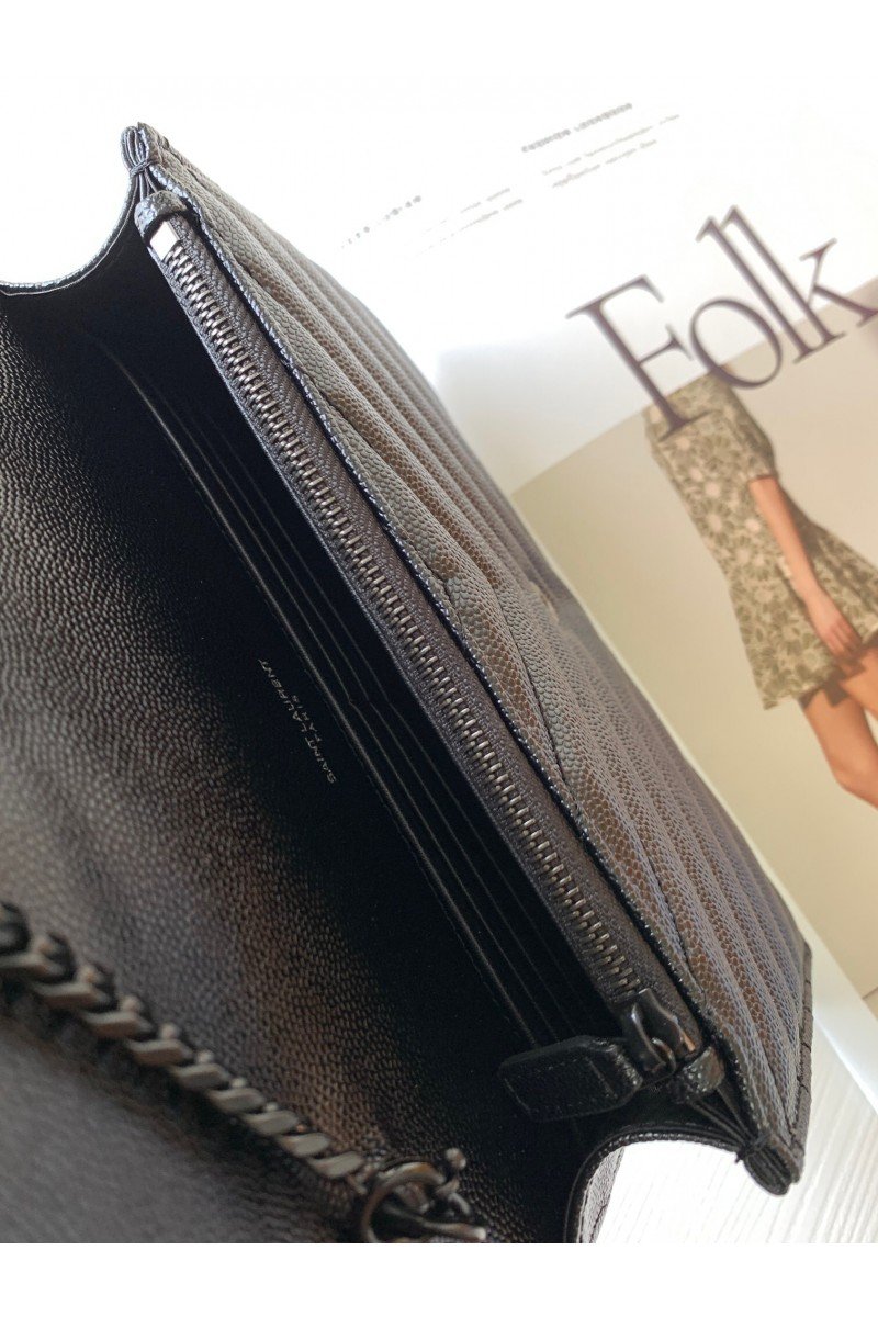 Saint Laurent Monogram Embossed Leather Chain Wallet Women's Bag Grey