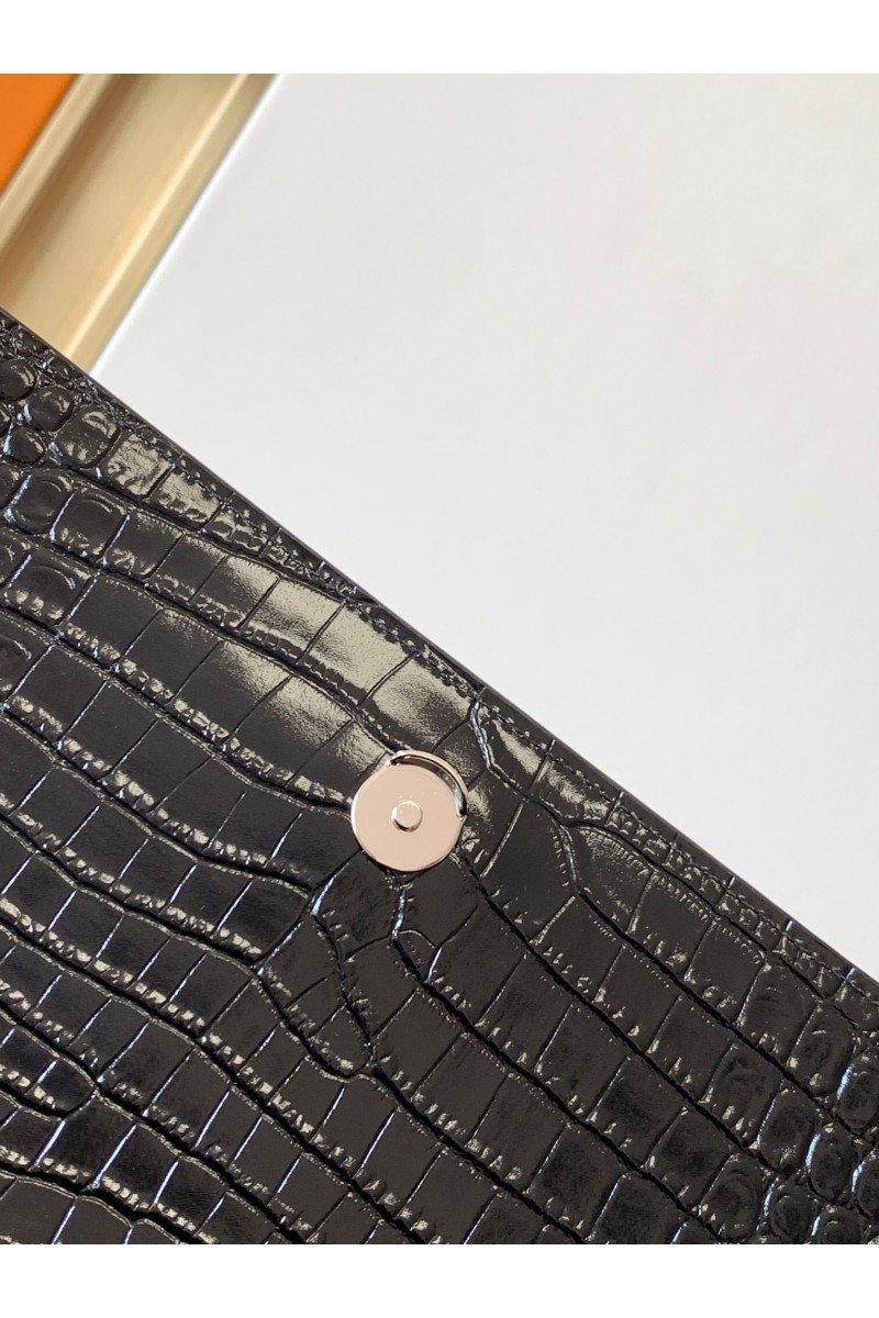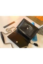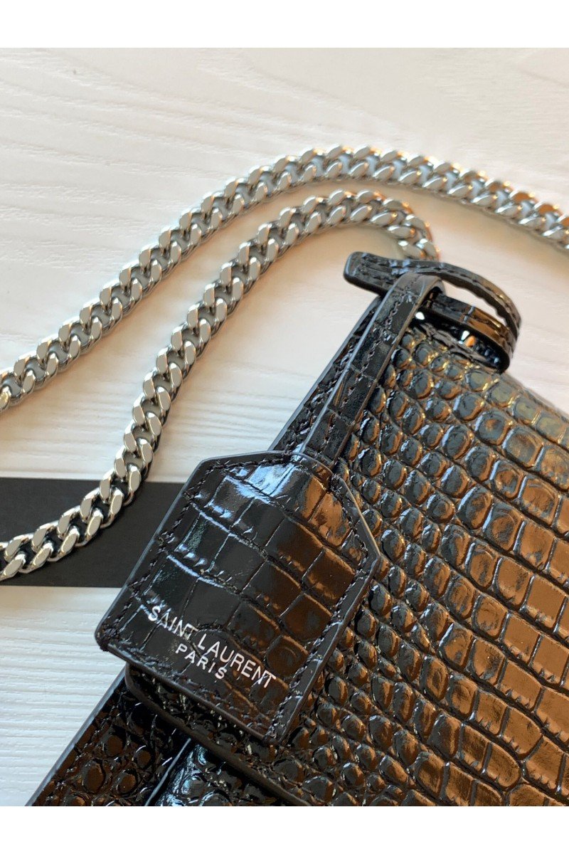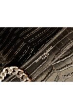 Saint Laurent Monogram Embossed Leather Chain Wallet Women's Bag Black
