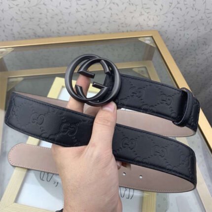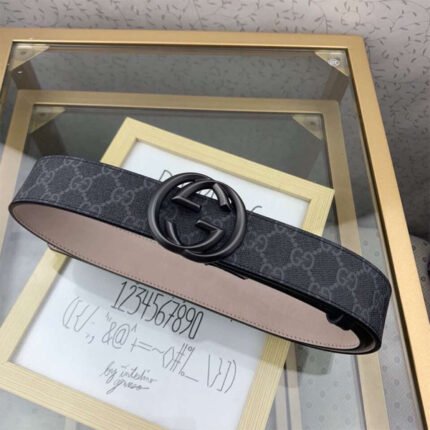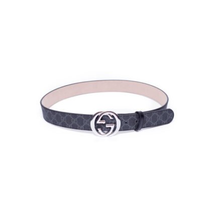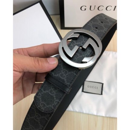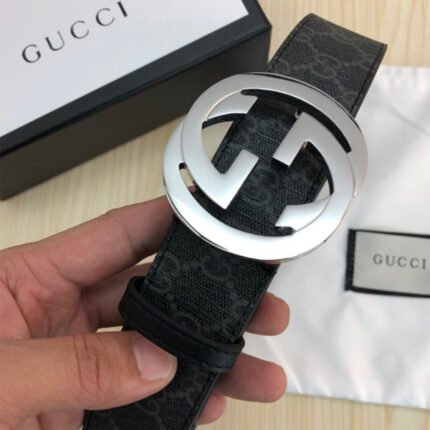 Gucci Men’s Belt Canvas Black Silver Buckle