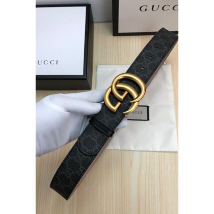 Gucci Men’s Belt Canvas Black Gold Buckle