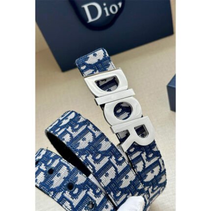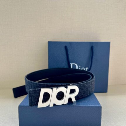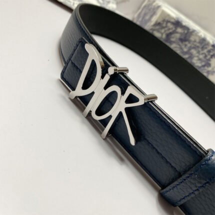 Christian Dior Silver Buckle Leather Men’s Belt Navy